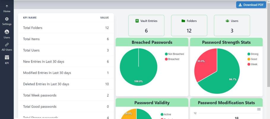 Stay compliant with industry regulations and internal password policies. Secure Passwords helps enforce password best practices and includes a range of KPIs and dashboards, giving you real-time insights into password security and compliance
